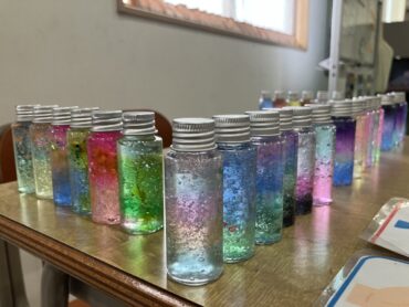 プレゼント作りでは、アロマポット・段ボールモルック・お菓子ミッキー