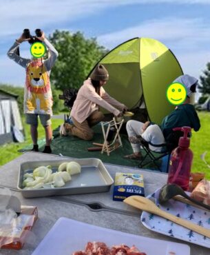 さわやかな秋晴れの中、デイキャンプを楽しみましたよ 「わ~、ご飯美味しそう」 「 ...