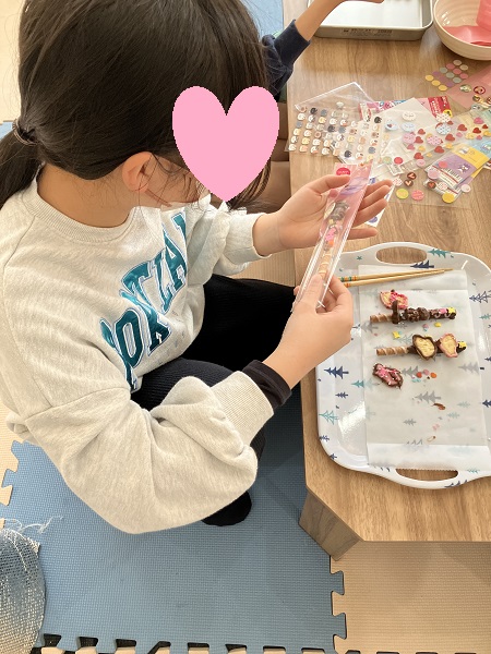 今日の祝日は、バレンタインのチョコを作りました。 お菓子に溶かしたチョコをぬって ...