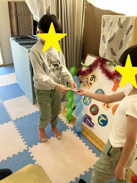 お友だちから、プレゼントが渡されました。