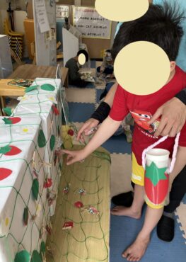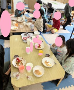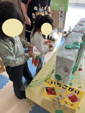それぞれが摘んだいちごは、おやつの時間に![]()