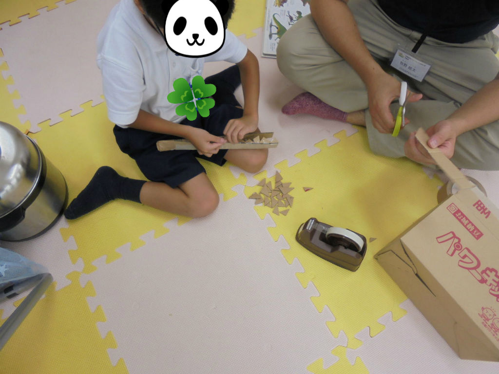 製作をしながら「ぶどうは英語でグレープって言うんだよ!」と子どもさんが教えてくれました![]()